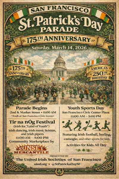 Special attention will be given to the unique role that Irish immigrants played in shaping the city’s early history, while also reflecting on the broader immigrant journey. Local organizations, cultural groups, and artists will come together to share their stories through music, dance, and visual art. With marching groups, community leaders, and activists spotlighting the immigrant experience, the parade will remind attendees of the enduring spirit of inclusion and the ongoing story of people finding new homes, new opportunities, and new beginnings in San Francisco.